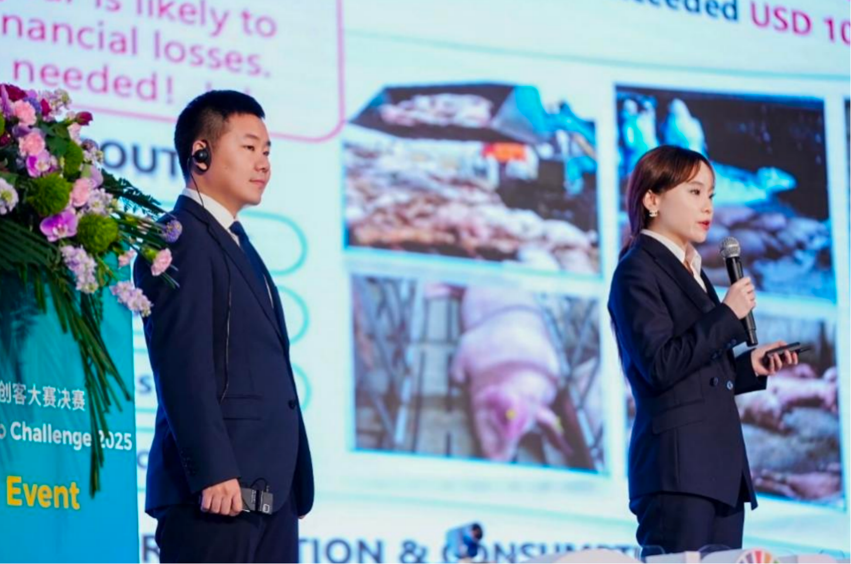 ▲ 现场路演措施,中国猪群实时防守战团队代表先容花式。傅俊豪 摄