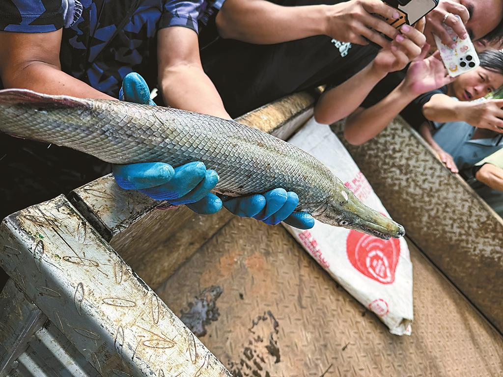 经过通宵的恭候,18日上昼“怪鱼”终于被拿获,经专科部门阐明为鳄雀鳝。“捕捞到的鳄雀鳝长50多厘米,后续按规则过程进行了无害化处理。据咱们不雅察,目下暂未对公园水域生态形成太大影响。”夏玉玲告诉记者。